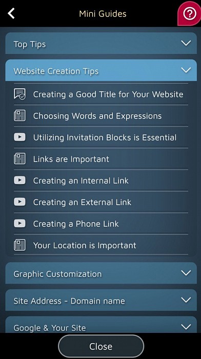 Aplikacija in vodniki skupaj delujejo kot pomočnik, ki vam pomaga brez napora vaditi umetnost ustvarjanja odlične spletne strani!